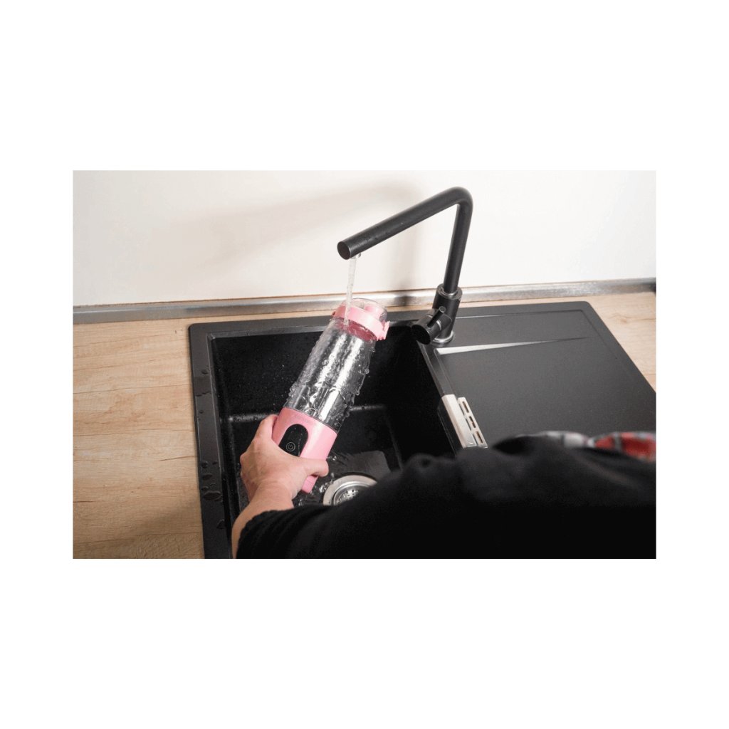 Čištění mixéru je velmi jednoduché. Stačí ho naplnit vodou s kapkou jaru a na pár vteřin spustit. Poté ho propláchněte čistou vodou a máte hotovo. Díky voděodolnému zpracování se stupněm krytí IPX7 můžete celý mixér bez obav opláchnout pod tekoucí vodou.