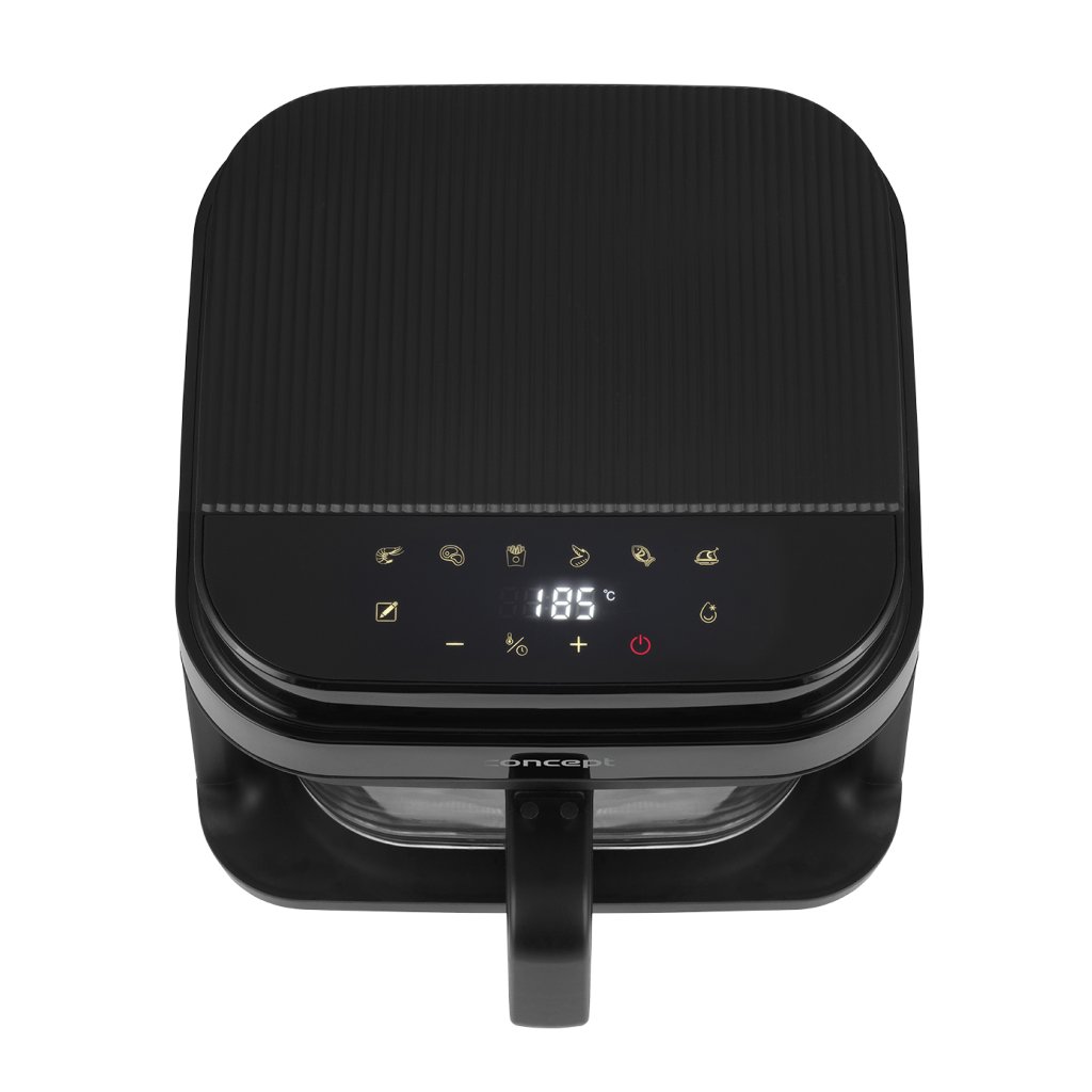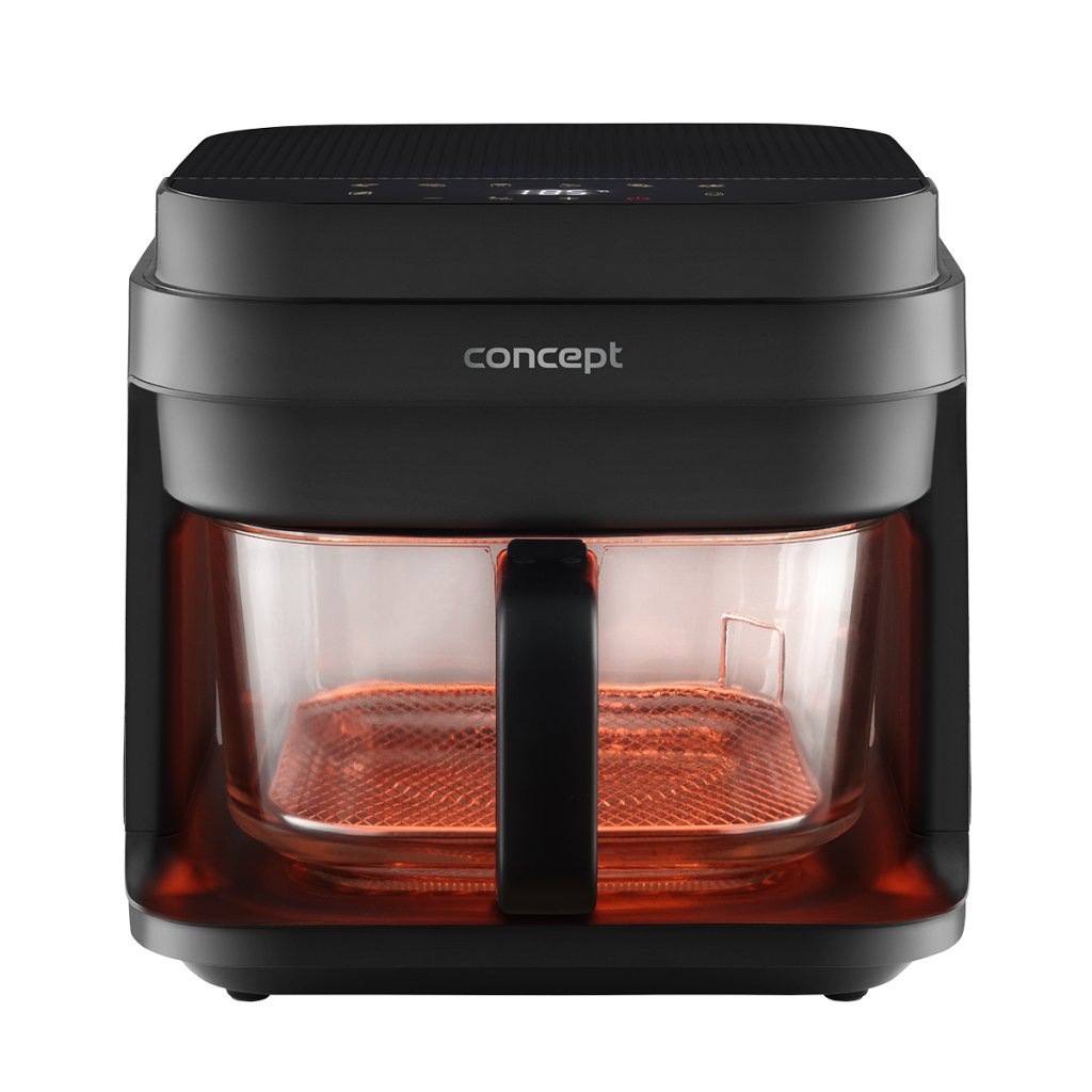 Horkovzdušná fritéza Glass & Fast Concept FR5500 připraví chutná a křupavá jídla pomocí horkého vzduchu – bez oleje nebo jen s minimálním množstvím. Výsledek? Méně kalorií, cholesterolu a tuku, žádný nepříjemný zápach z oleje a možnost dopřát si své oblíbené pokrmy každý den bez výčitek.