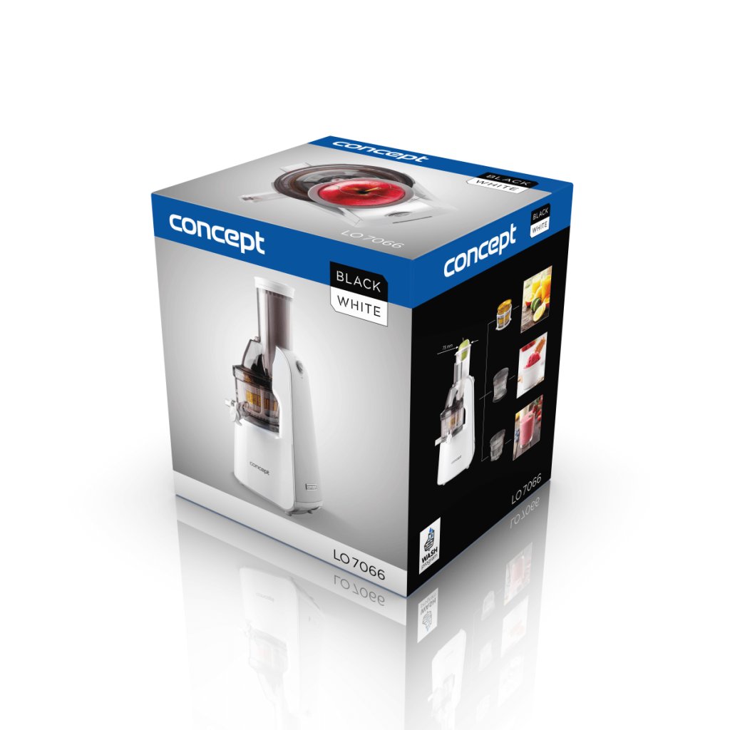 Odšťavňovač Concept LO7066 je navržen s ohledem na nízkou hlučnost, která činí pouhých 57 dB. Díky tomu se tento model řadí mezi nejtišší šnekové odšťavňovače na trhu.